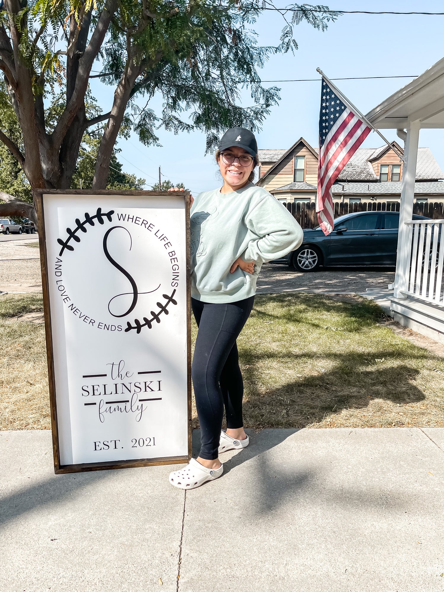 Our door hangers are hand painted with premium outdoor paint, just like the outside of your house. Meaning they are made to last for a very long time. Each door hanger also includes felt pads for you to attach to the back to protect your door.