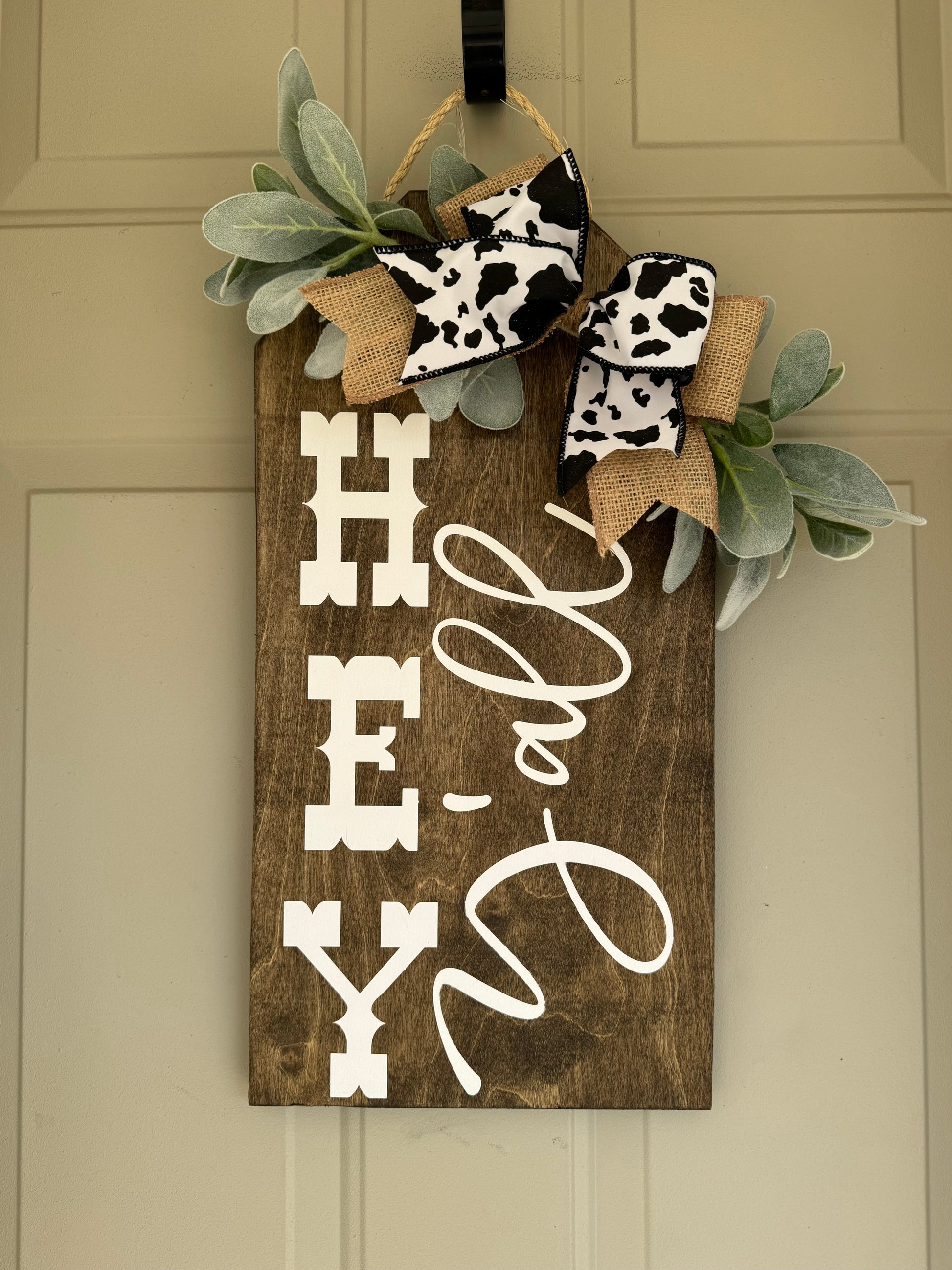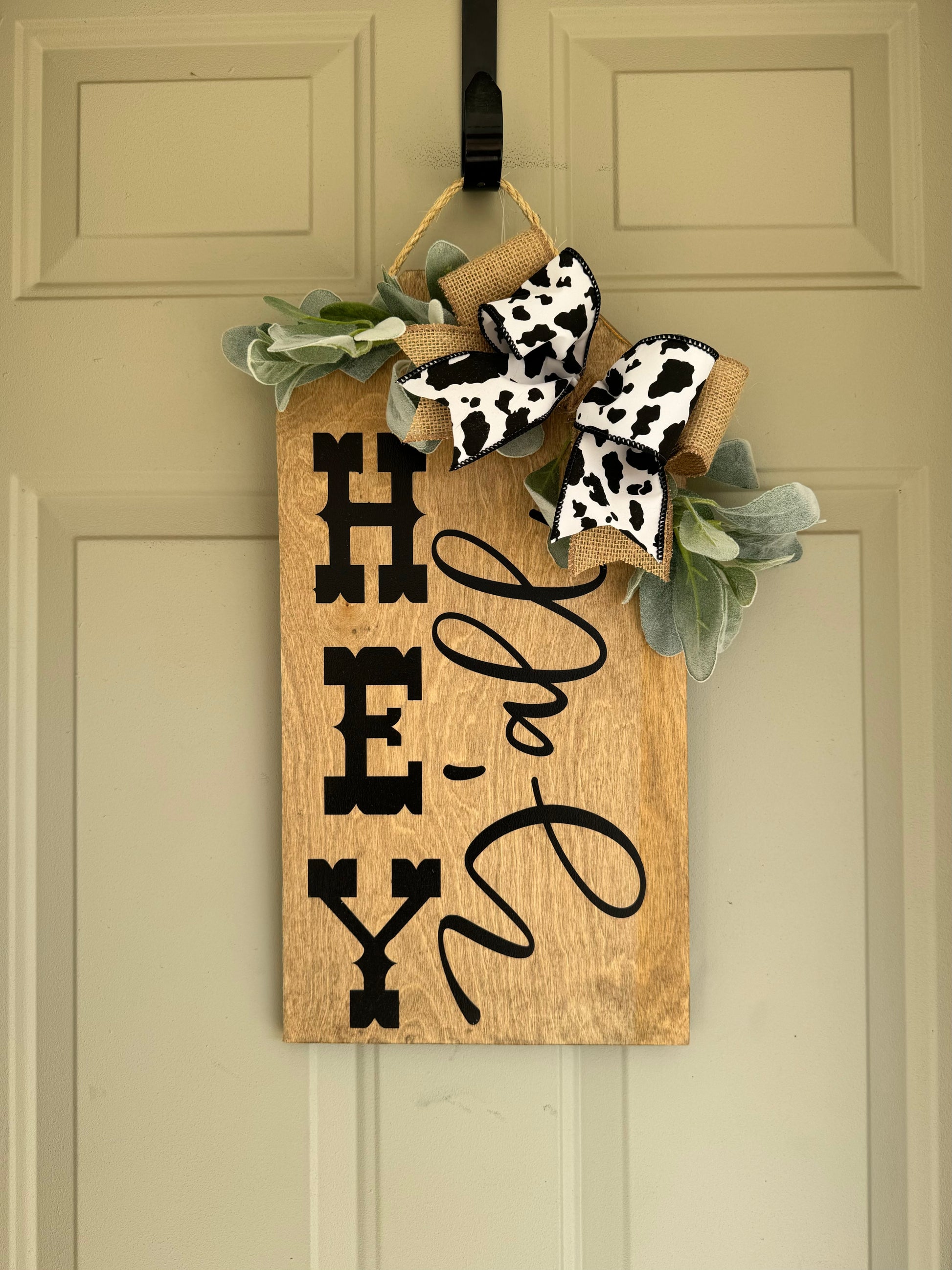 All of our signs are fully handmade (hand cut + hand painted), making each one unique. As a result, word placement, bow, stain color, or type of greenery may differ from the photo.