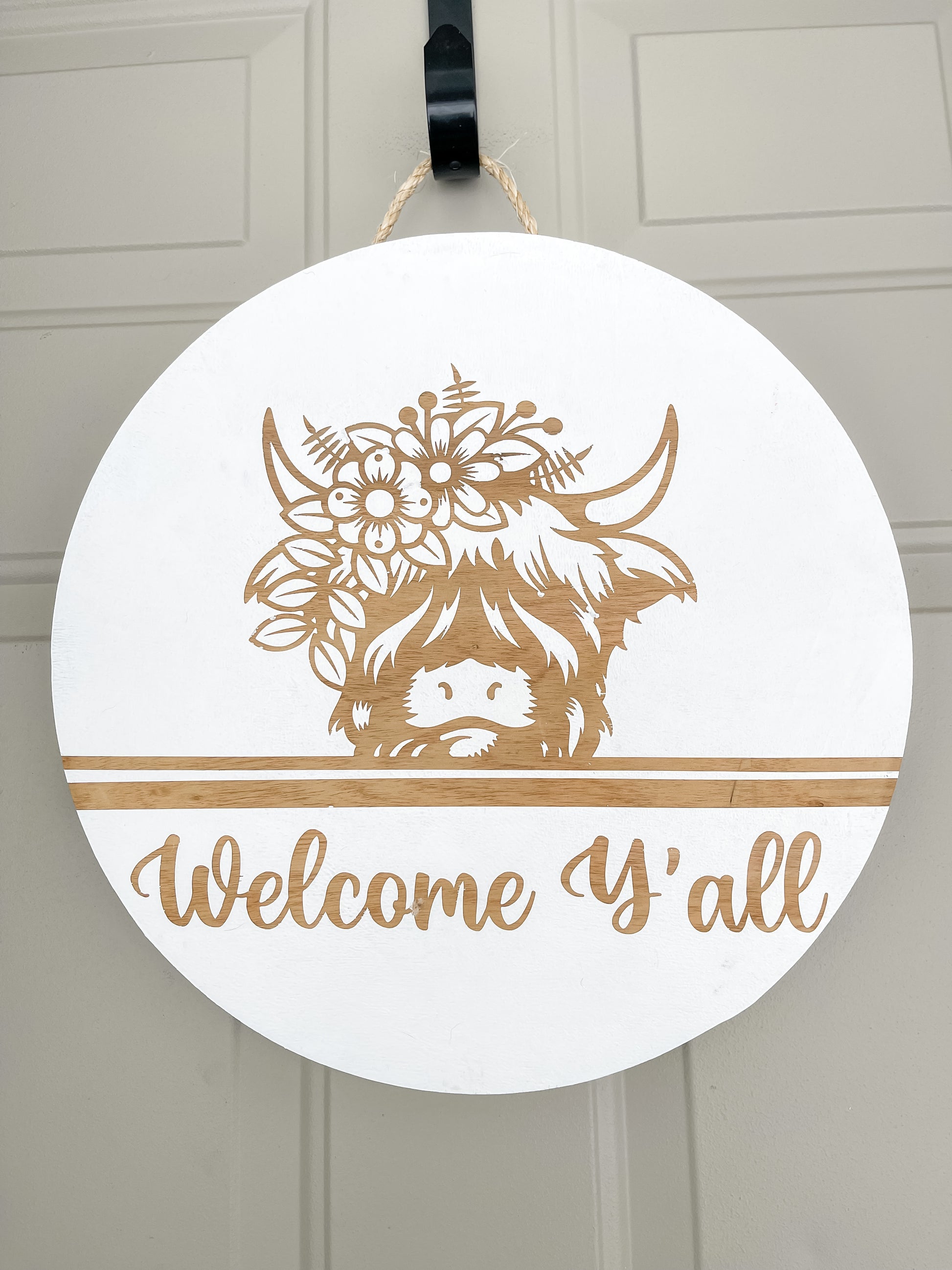 All of our signs are fully handmade (hand cut + hand painted), making each one unique. As a result, word placement, bow, stain color, or type of greenery may differ from the photo.